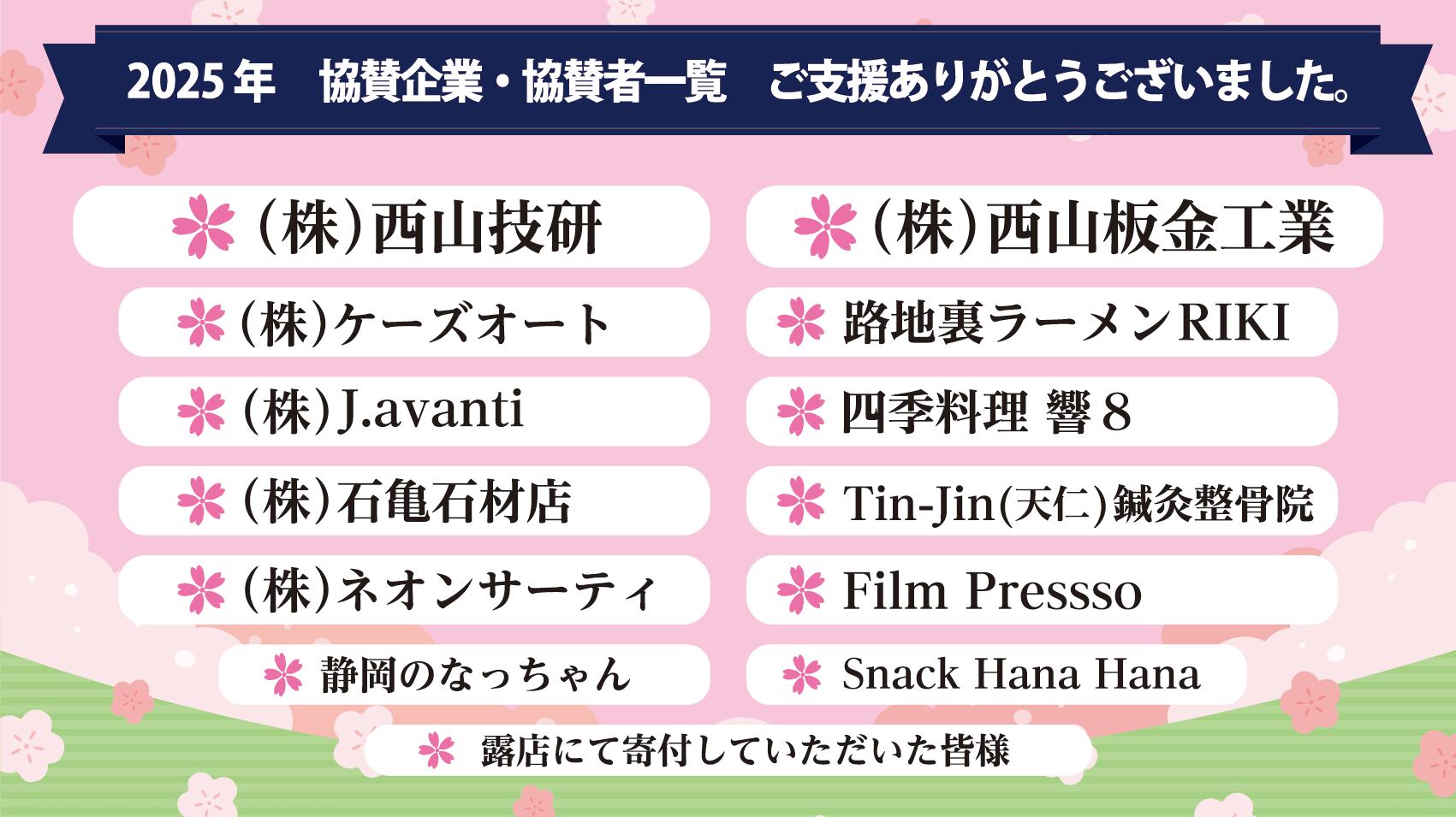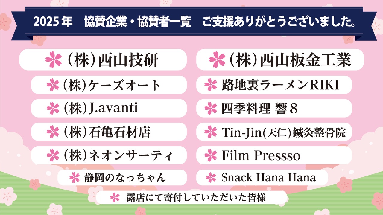 ・マグネットシートで名前(中)を記載して来年貼り出させていただきます。(昨年御協賛いただました皆様のデータ御覧下さい)